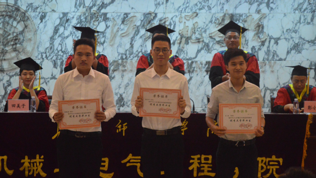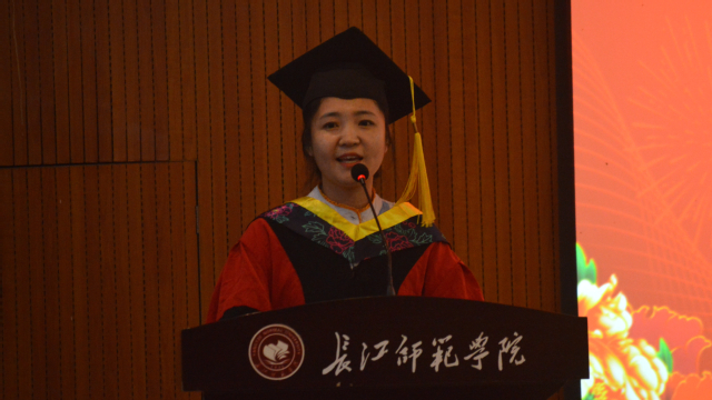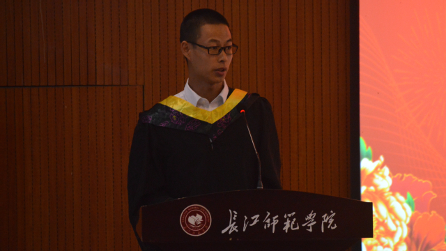 毕业生代表陈成发言道:希望踏出校园的你真正践行“学高身正,敬业自强”的校训,不忘“规矩规格,铸就卓越”的院训,一路砥砺前行。