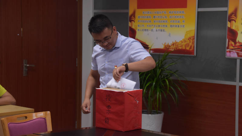 接着第五项议程是对公司员工第一党支部委员会成员的选举,由公司第一党支部各党员进行不记名投票,监票,计票人公开唱票并当场投票选举,确保了选举的公平公正性,最终经投票选举出公司第一届第一员工党支部委员会三名成员,分别是陈磊,赵祥淼,杨慧。最后一项议程,由第一党支部全体成员合影留恋,至此,公司员工第一党支部选举大赛大会圆满结束。