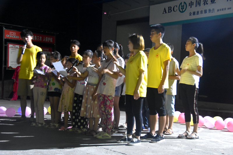 19日晚上八点,石牛村便民服务中心坐满了人,晚会的兴奋中透露着离别的悲伤,在石牛村张洪平主任和张瑜书记讲话之后,JN体育团总支书记陈磊宣布此次晚会正式开始,此次晚会由志愿者主持,文艺小组负责节目,无论是歌曲《稻香》、《真心英雄》,还是志愿者们的“诗朗诵”,还是全体手语操《感恩的心》,都体现着长师学子的风采。还有阿姨们的《开门红》和《相约北京》带动全场,将整个晚会推向高潮。“真是青出于蓝而胜于蓝”看着小朋友们表演葫芦丝,志愿者欣慰的表示。最值得表扬的还是文艺小组准备的时装秀,小朋友和志愿者们手牵手一起走,赢得现场阵阵掌声“在如此艰苦的条件下,这两天辛苦你们了”石牛村的乡村们对志愿者们说。