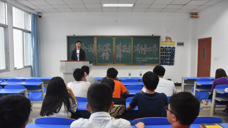 jn江南于9月9日利用团会时间组织了2016、2017级学子一起学习全国扫黑除恶斗争工作精神。