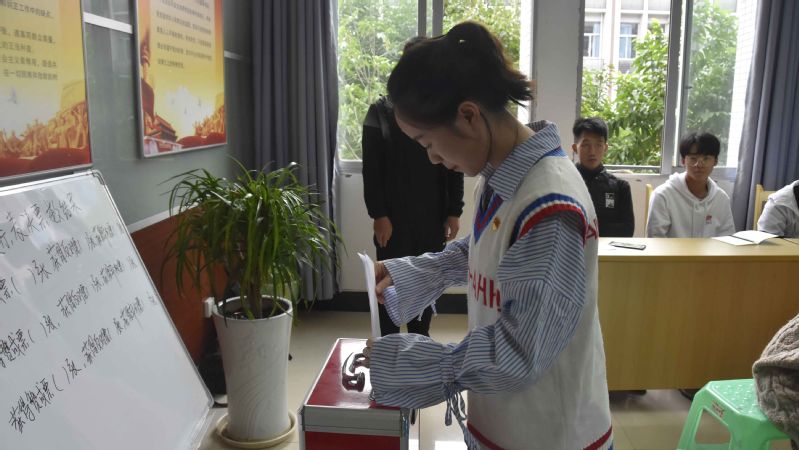 评议后,支部成员就是否同意秦犇、杨明龙、闫琼三位同学加入中国共产党进行无记名投票,投票结果5票赞成,0票反对,0票弃权,三名发展对象顺利通过了现场具有表决权的党员过半的投票,员工党支部书记陈磊宣读了支部决议,大会同意接收秦犇、杨明龙、闫琼三位同志为中共预备党员。接下来,三位同志做了表态发言,三位同志都结合自己的实际情况表达了自己成功加入党组织的激动欢愉之情和今后的行动表态。