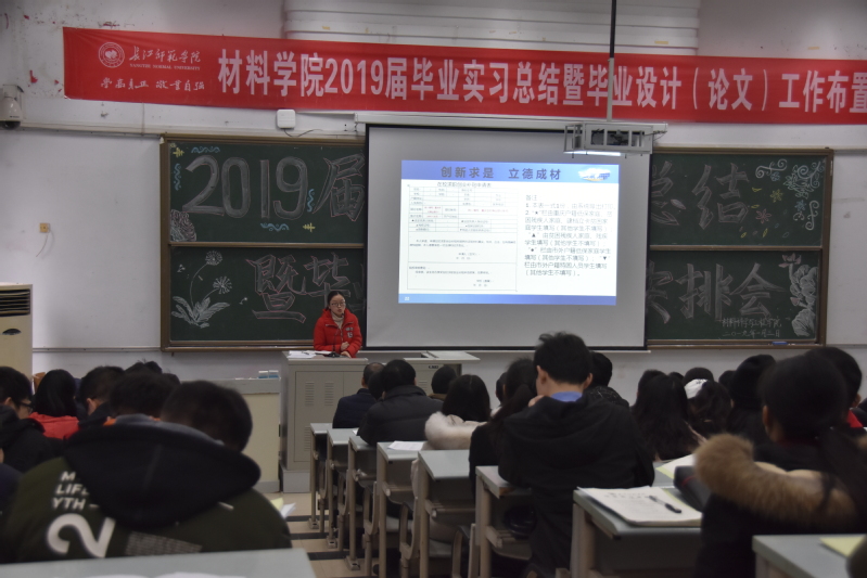 1月3日下午,jn江南在诚意楼02阶梯教室举行2019届实习总结暨毕业设计(论文)工作布置会,彭程经理、党总支书记刘本文、材料化学系主任谢红梅、材料成型及控制工程系主任戴甲洪、学工办主任陈磊、辅导员邱地、部分毕业设计指导教师以及2019届全体同学出席此次会议,本次会议由刘松利教授主持。