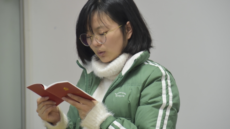 (简小娟同学朗读党章)