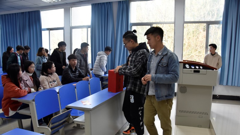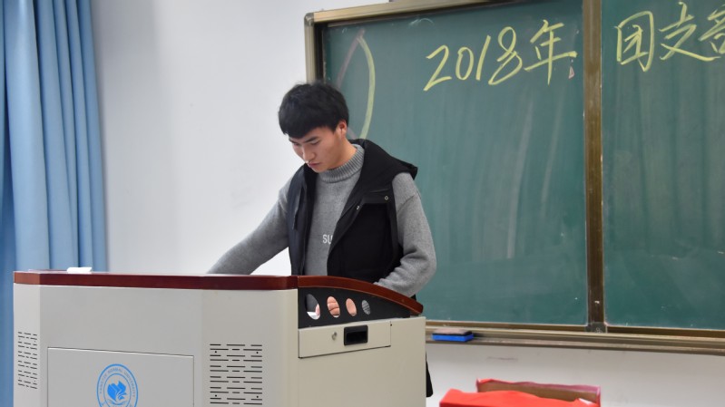 在全体参会团员起立奏唱团歌之后,测评工作正式开始,在主持人的主持之下,测评按照流程有序进行,各团支部书记上台就2018年工作进行述职报告,他们分别总结了2018年任职以来的工作,提出了在工作的不完美之处,进行了自我批评,并表示会不断完善。述职结束后,到了测评最重要的一项—现场进行满意度测评,此次测评采取匿名形式,评分有“满意、基本满意、不满意”三个等次。工作人员给每个参会团员发放测评表,并组织团员依次到填票处填写,逐一投入票箱后回到原座位。紧接着进行现场唱票计票,并公布测评的结果。