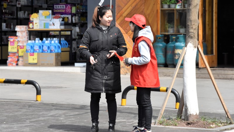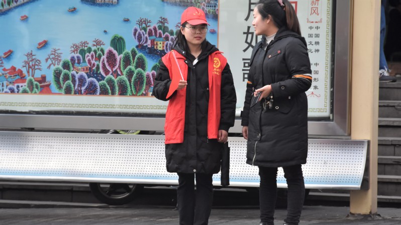 (志愿者规劝行人)