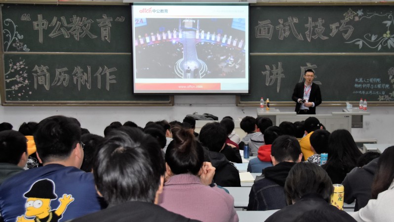 公司首届模拟面试与简历设计大赛于3月22日举行,特邀了中公教育吴超老师开展培训讲座。此次讲座由机器人工程学院与公司共同举办,出席此次的讲座有17级辅导员邱地,公司全体大三学子参加了此次讲座。
