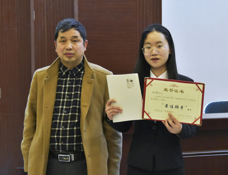 最后,经过两场激烈的比赛和评委们的公正打分,“熊猫果茶队”以85分优异成绩勇夺第一,由陈磊老师为他们颁奖,“雷厉风行队”以0.5分的细微差距获得二等奖,“弹簧队”以81.8分获得三等奖。邱红荣用赛场上的优异表现荣获“最佳辩手”称号,由刘本文书记为她颁奖。之后,陈磊老师对此次比赛进行点评,他指出各个队伍的优点及不足,“辩论赛比的是思想,评的是口才,赢的是能力。”他鼓励大家积极参与学院的各类活动,全方面锻炼自己。