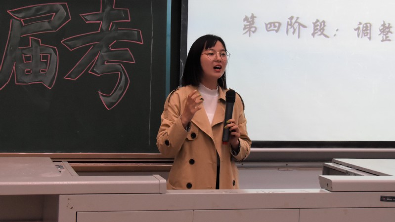 交流会开始后10名优秀考研学子依次上台,根据自身的考研经历和对大家有用的考研经验进行分享。其中材料化学专业黄小青上台详细地讲解了自己复习各科的时间安排及学习的方式。向有意参加研究生考试的学子推荐相关科目的参考资料,结合自身告诫大家尽量不要跨专业考研,也要认真地学好英语。