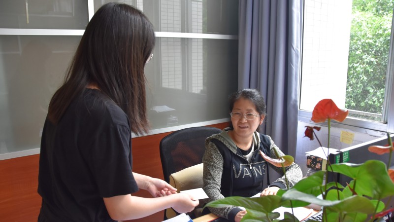 毕业生党员一行人来到办公室后,首先亲手将他们书写的卡片献给在岗位上辛勤工作的老师们,并对老师们给予的谆谆教诲表达了最真诚的感谢。老师们在接过毕业生党员的卡片时惊喜之情溢于言表,同时各位老师也与毕业生党员们进行了亲切的交谈,了解他们现在的生活及就业情况并祝愿各位毕业生党员前程似锦,一切顺利。