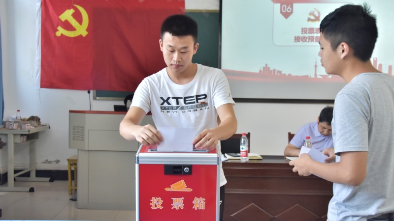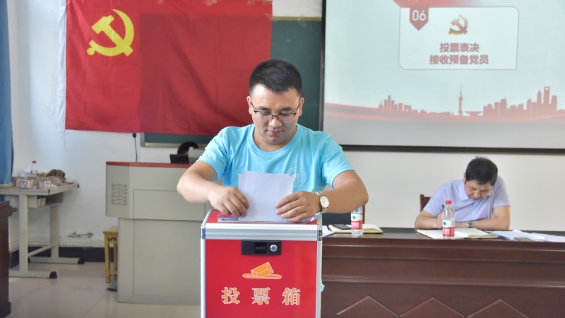 随后组织部发放选票,在场正式党员对4名发展对象进行投票表决。计票后陈磊老师宣布投票结果,在场正式党员一致同意4名发展对象成为中国共产党预备党员。紧接着他们依次对投票结果进行表态。