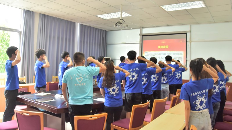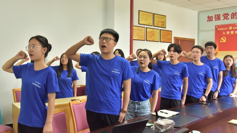 之后全体起立宣誓,铮铮誓言是他们的承诺,他们愿意一直在志愿服务这条路上前行。最后,党总支书记刘本文以及团委书记陈磊和服务团全体人员进行了合影留念。