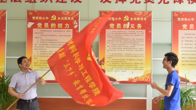 紧接着由刘书记为三下乡服务团授旗,领队人接过这面旗代表着接过这份责任,洋溢的笑容代表了他对此次三下乡活动成功举办的信心。