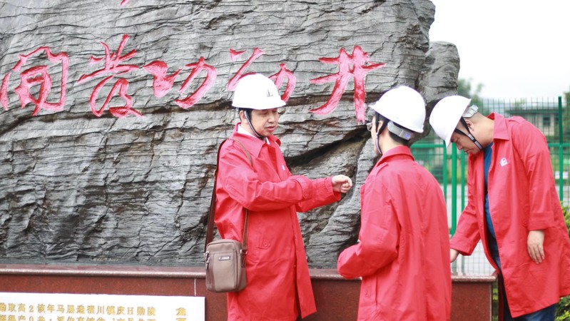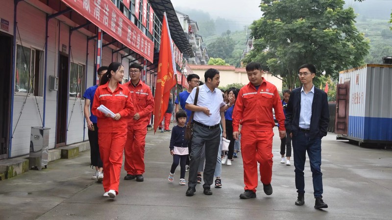 7月9日上午9时,jn江南党总支书记刘本文和廖鹏老师来到焦石镇与志愿者一起参观涪陵页岩气田——焦页1HF井。