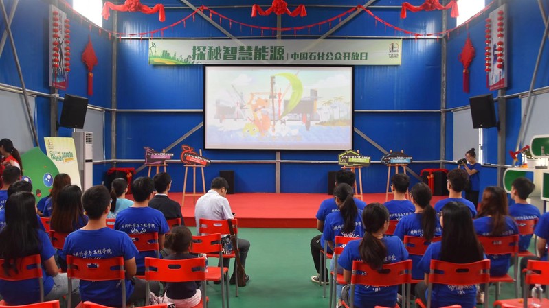 在当地社区负责人的带领下,志愿者帮扶团率先来到了涪陵页岩气开发示范基地,志愿者们受到了热烈的欢迎。紧接着,刘书记与基地负责人讨论该院相关专业与基地工作之间联系的问题。闲谈中,志愿者们进入了员工文艺活动室,这里等待志愿者的是一节有关石油和页岩气的理论知识课堂。在这里,志愿者了解到涪陵页岩气的发展史和页岩气的开采方法,还获得了精美纪念品。
