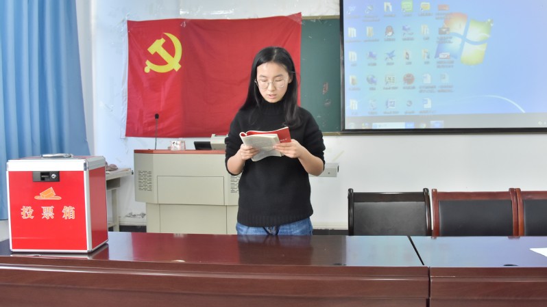此后,李琴与刘语各两位入党介绍人分别介绍其发展对象情况,并对其能否入党表明意见。紧接着,组织部宣读发展对象的审查结果后由支部书记宣布了监票计票名单,而后党员投票表决是否接受预备党员,接着监票与计票人报告了计票结果。
