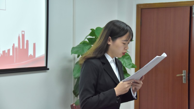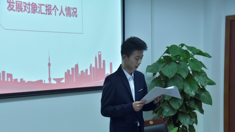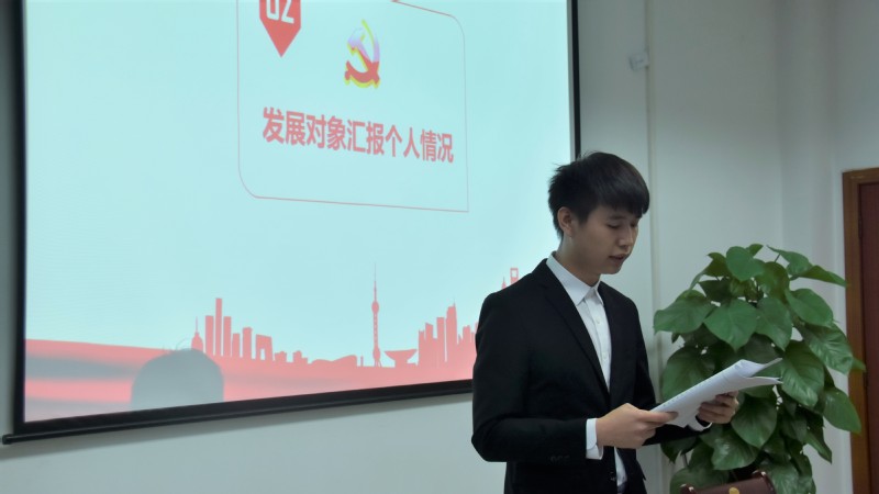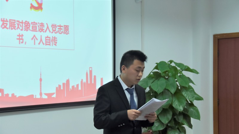 首先,全体肃立,奏唱《国际歌》,大会也由此拉开帷幕。接下来为四位发展对象宣读入党志愿书、个人自传以及家庭成员情况。在宣读环节,四位同学均表达了自己对党的忠心以及入党的决心。同时,四位同学的分别点出自己的优缺点,并且表示会积极发展自己的优点,努力修正缺点,不断完善自己。随后,是由入党介绍人介绍发展对象培养的考察情况。四位同学的入党介绍人指出了发展对象的优缺点,并且就其能否入党表明意见,同时提出了对于发展对象的期望。然后,由组织部宣读发展对象的政审结果。待宣读结束,并确保发展对象政审结果无误后,支部书记宣布监票人名单。在场的八位正式党员对四位同学进行投票表决。最后,四位同学均以8票赞成,0票反对,0票弃权被吸收为预备党员。在此以后,四位同学均表明了自己在入党之后定会更加严格律己。