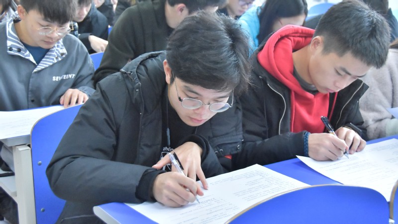 在监考员分发完试卷后,同学们迅速开始答题。此次知识竞赛围绕着“不忘初心、牢记使命”的主题展开。此次知识竞赛主要对“不忘初心、牢记使命”主题教育的概况、中国共产党人的初心和使命是什么、我们该怎样做三部分内容进行了检测。其中,对五个重点、六个“要求”、新时代“四个伟大”的新使命、四个意识、四个自信、两个维护进行了重点考察。在考试的过程中,公司学子认真答题,考场秩序井然。