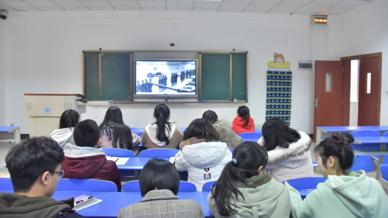 活动开始前,首先由邱地老师介绍此次活动的主要议程。活动伊始,由邱地老师带领大家观看《国庆70周年成就展》视频,其内容为专题文献片《我们走在大路上》的第一集——新中国的诞生。该片全景式地展示了新中国风雨兼程、砥砺前行的伟大历程,详细地描述了十九世纪的中国是如何一步步地迈进半殖民地半封建社会的黑暗深渊,而后一场场伟大的民族复兴运动随之掀起。从辛亥革命到五四运动,从南昌起义到井冈山会师,无数的仁人志士英勇奉献,书写了人类历史上的英雄史诗。中国共产党成立以来的二十八年浴血奋战,使中国出现在了东方的地平线上。