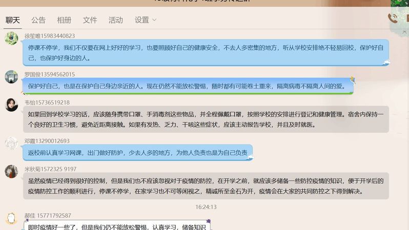 此次班会让公司学子进一步了解了复学前后的注意事项和要求,有利于同学们做好复学的准备,更有利于公司复学后防疫工作的顺利进行。