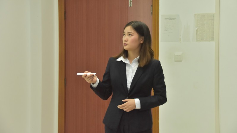 接着,邱地老师对此次比赛进行了总结,首先她对参赛选手表示感谢。同时,从着装、仪表上给与了高度肯定,能够看出选手们的精心准备与严谨的态度。通过本次决赛,邱老师也发现了此次活动筹备中存在不足之处,表示在来年的活动中不断完善,希望大一、大二的学子们能一如既往地积极参与。