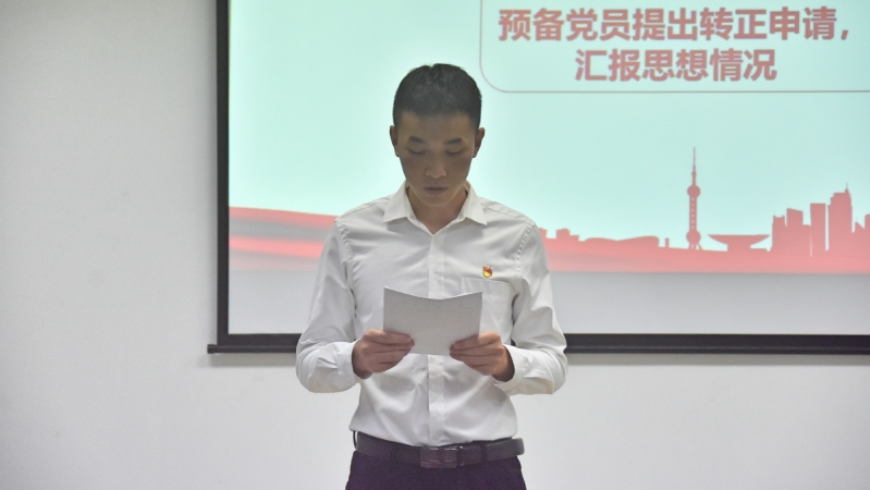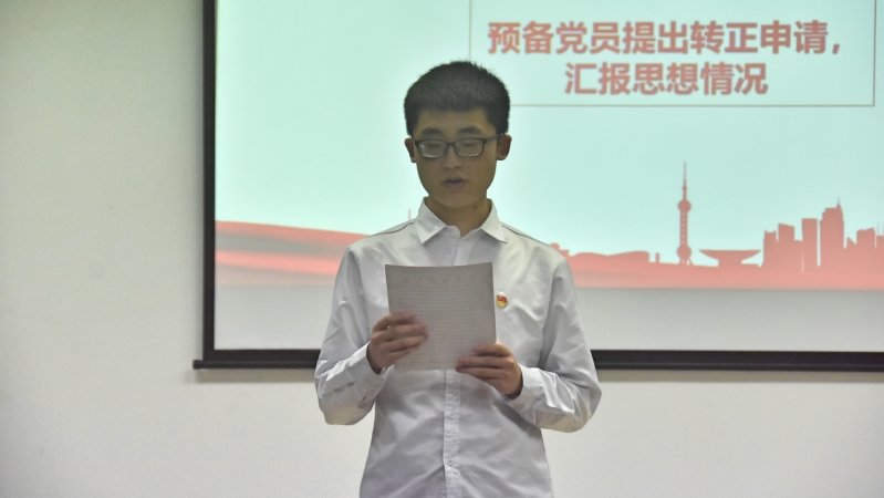 开始大会第一项:奏唱国际歌。合唱结束后,进行大会第二项:预备党员提出转正申请,汇报思想情况。预备党员邹滨阳、王健南、余欣欣、钱明珊分别提出转正申请和汇报思想情况,预备党员邹滨阳、王健南、余欣欣、钱明珊详细汇报了自己在预备期间的表现,表达了入党的志愿和决心,并对自己作为预备党员期间,在思想、学习、工作、疫情期间作为预备党员的表现和对国家责任领悟上的进步和不足作了认真总结。