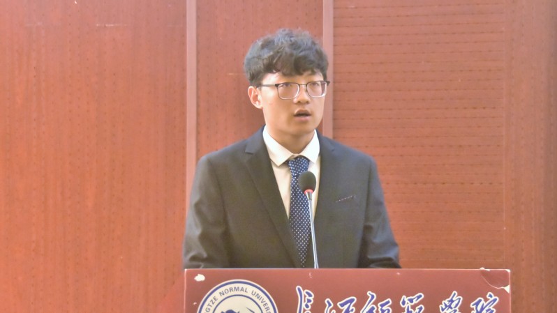 而后,来自2020级材料科学与工程1班的新生代表郭子华进行了发言。郭子华就“大学是什么”说到,大学所传授的不再是单一的知识点,大学更多地是传递学习、生活中的多样性和不确定性。随后,他呼吁全体新生要在一次次经历中重新认识自我,认识社会,明确自己的目标,朝向自己心中所想,努力学习,学会思考,学会实践,加以奋斗。