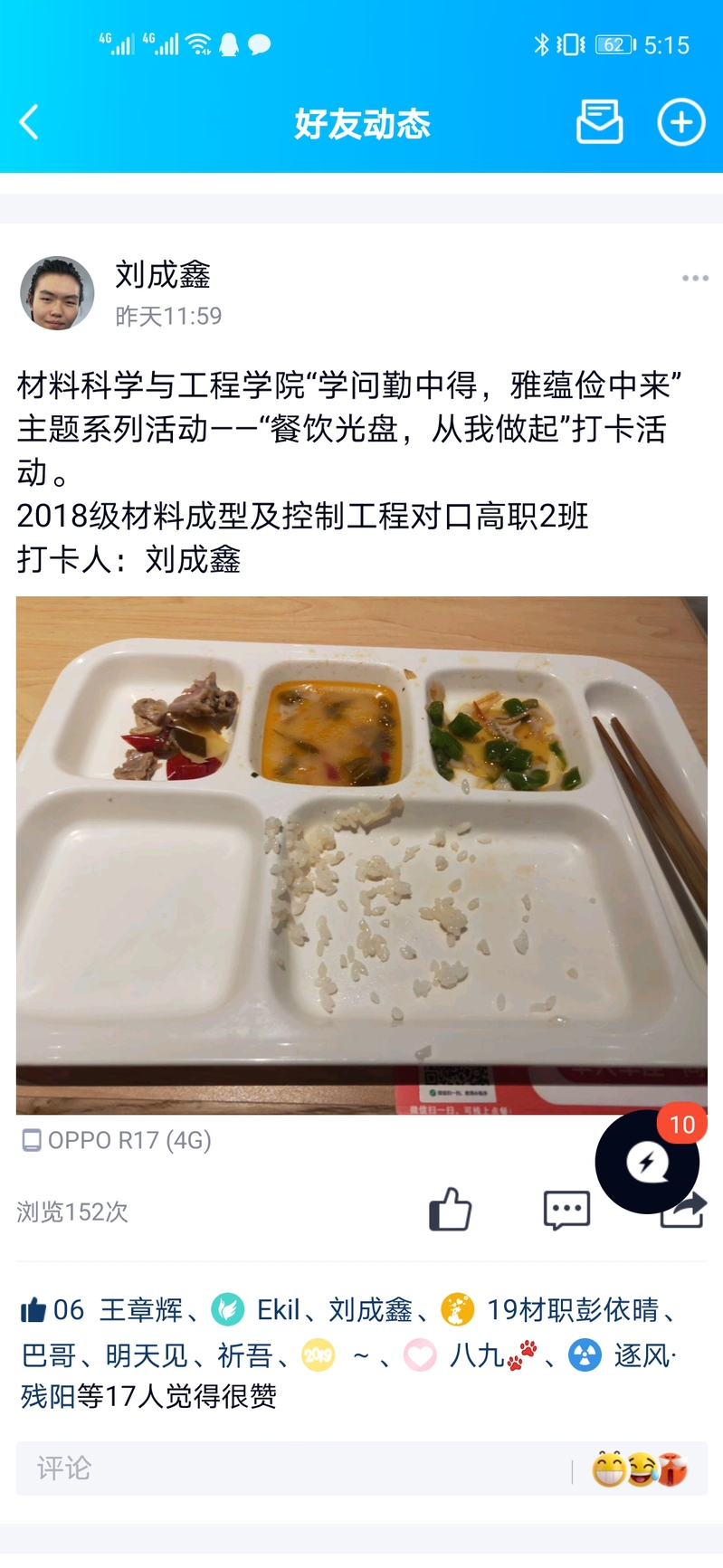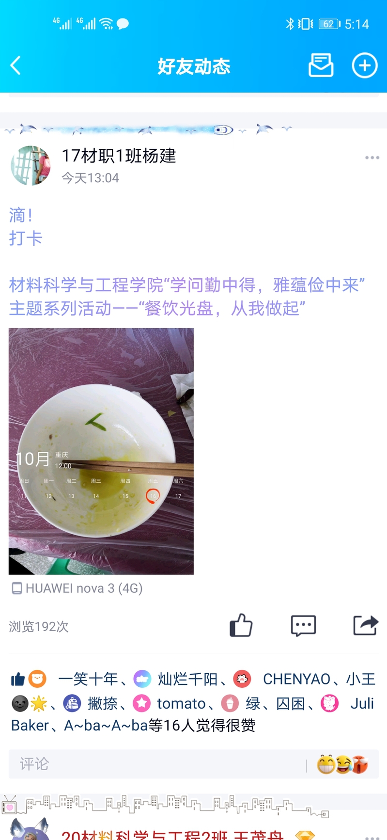 活动一:“餐饮光盘”打卡活动