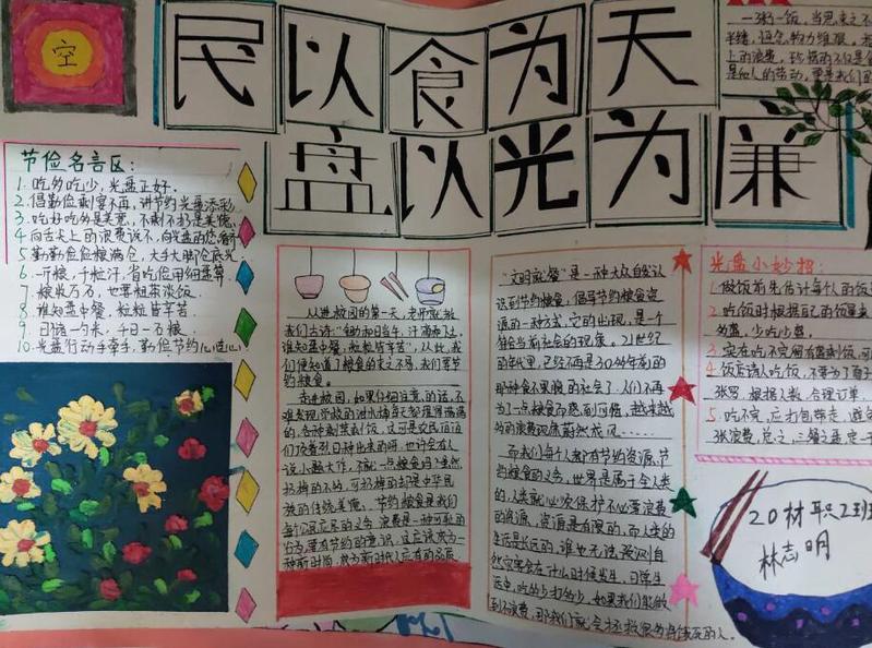 时值世界粮食日到来之际,为提高同学们员工勤俭节约意识,jn江南团委员工会积极宣传餐桌节约知识,杜绝餐桌浪费行为。开展“光盘行动”主题系列活动。大力提倡勤俭节约的良好风气,培养节约粮食的餐饮文化,净化校园文化文明环境。此次活动内容形式非常丰富,分为“我与光盘合个影”线上签到打卡活动;“厉行勤俭节约,反对餐饮浪费”承诺签名,主题征文,手抄报设计等活动。