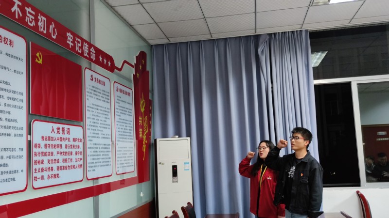 最后,以9月份发展的两名新同志丁会敏同志、付俊杰庄严的入党宣誓和集体党员重温入党誓词结束了本次活动。