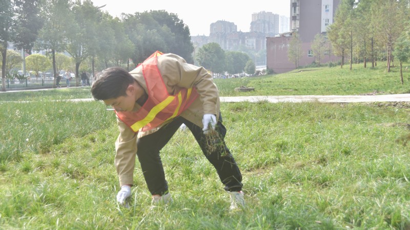 此次活动以美化踏水桥附近居民环境为目的,在确保草丛完整性的条件下,主要清除丛生的杂草。在领取完工作手套及服装后,公司学子以饱满的热情,积极投入到了拔草行动中。