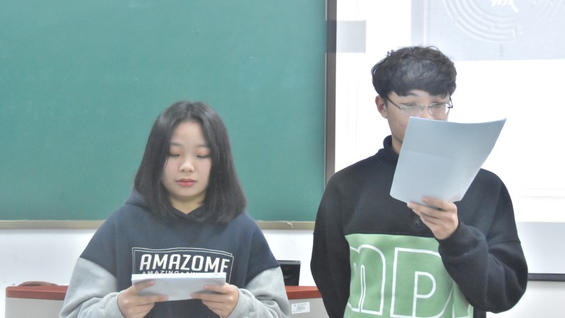 为缓解同学们在活动开始前的紧张情绪,主持人纪紫怡、郭子华主持开展了“文化常识”的大比拼环节。过程中同学们积极发言、融入其中,很好的缓解了大家刚进入教室时的紧张气氛。