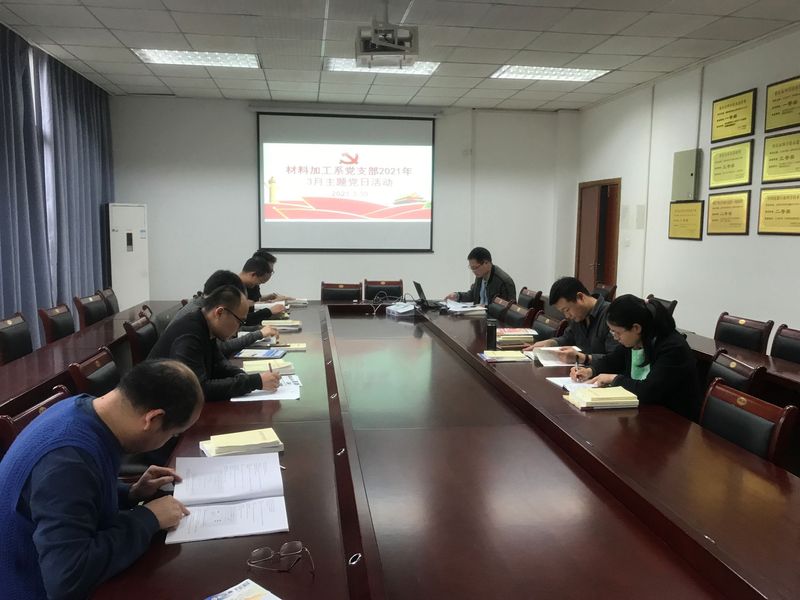3月30日材料加工系党支部在崇智楼210会议室开展“学党史、悟思想、办实事、开新局”主题党日活动。材料加工系党支部书记戴甲洪要求支部党员深入学习贯彻习近平总书记在党史学习教育动员大会上的重要讲话精神,认真落实党中央部署要求,扎实有效开展党史学习教育,学党史、悟思想、办实事、开新局,把学习教育成果转化为我们教学科研的动力,更加坚定自觉地为党的事业而奋斗,以优异成绩迎接建党100周年。