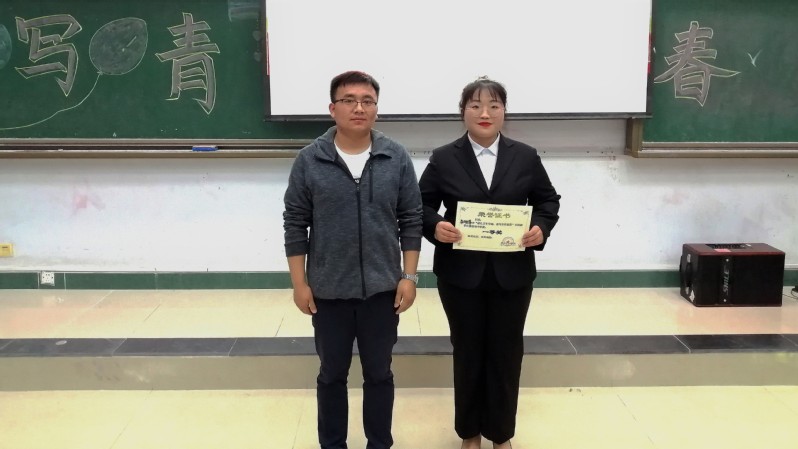 经过激烈的比拼后,最终由2019级材料化学一班的朱珊萍获得此次新生演讲比赛一等奖。最后陈磊老师对此次比赛做了总结讲话。首先,他对参赛选手的表现给予了肯定,对获奖的同学表示祝贺。接着,又给在场的全体同学提了三点要求:一是要树立崇高的理想信念,人生须有目标,青年首先要有理想,并且要将个人理想和国家的前途,民族的命运,社会的需要相结合,这样才会更有价值和意义;二是要有坚韧不拔的奋斗精神。理想信念不是一句空谈的口号,需要练就真本领去实现的,老员工们要在大学期间踏踏实实的学习专业知识,练就一身本领;三是要有正确的价值观去引领。社会主义核心价值观是当代中国精神的集中体现,凝结着全体人民共同的价值追求,广大青年应该将此作为自己的行动纲领。