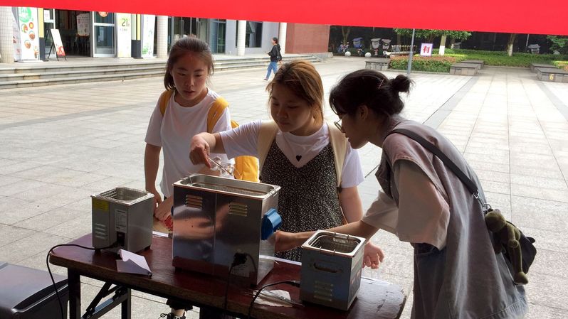 近日,公司团委员工会开展了“学党史,悟思想,我为师生办实事”志愿服务活动,先后利用超声波清洗机为全校500多名同学免费清洗眼镜,获得了同学们的一直好评;另外也积极组织学院志愿者们,定期开展实验室清扫活动,为学院师生提供一个干净整洁的实验环境。