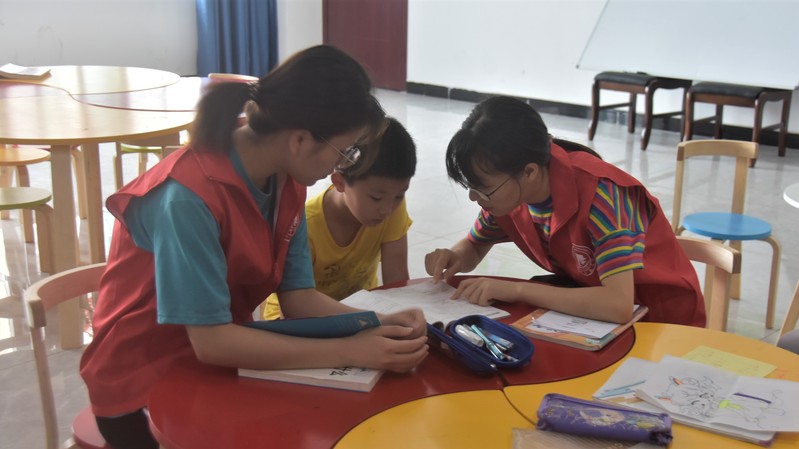 活动伊始,学子们辅导小朋友们完成了作业。无论是语文作业还是数学作业,学子们都为小朋友们进行了仔细检查以及耐心的讲解,小朋友们也专注地完成了作业,提出了学习过程中遇到的问题,并认真地听了作业讲解。