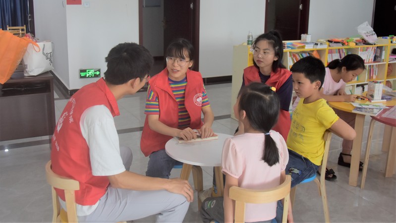 完成作业后,为减轻学习上的疲劳,学子们与小朋友们进行了课外活动,如:打乒乓球、下象棋、下五子棋、进行脑筋急转弯、玩“你画我猜”等。其中,下象棋时,学子们向小朋友们讲解了象棋有关规则,并指导小朋友们进行了象棋对局。玩“脑筋急转弯”时,小朋友们提出了“一边绿,一边红,一边喜雨,一边喜风。打一字”等诸如此类的有趣的谜题。学子们积极互动,活动氛围热烈融洽。