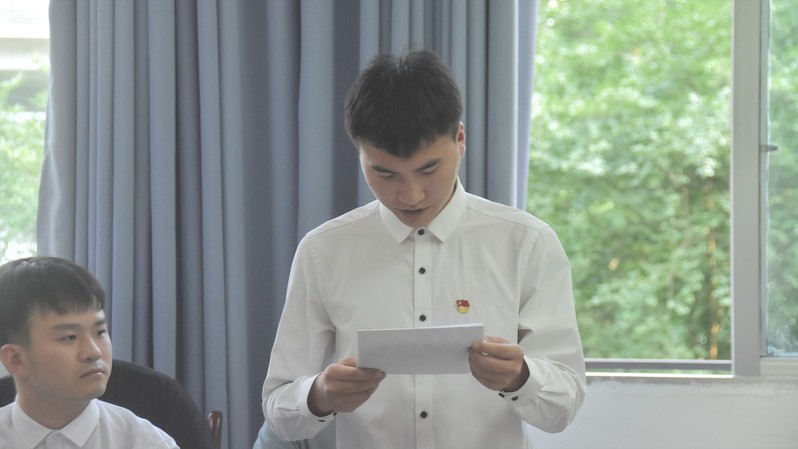 而后,徐赵阳同志宣读了转正申请,汇报了自己在预备期间的思想认识。他提到,成为一名预备党员后,在党组织的严格要求以及支部党员同志的帮助下,他通过一系列的组织学习以及社会实践,在学习、工作、生活等方面都有了很大的进步与提升。思想上,他主动加强了政治理论学习,通过一系列的学习树立了正确的世界观、人生观、价值观。工作上,他延续了踏实认真的工作态度,积极主动地完成组织布置的各项任务,不断地提升自身的工作能力。