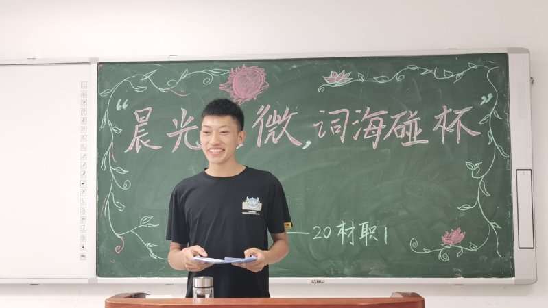为营造良好的学习氛围,培养公司学子自主学习的能力,6月2日7时30分,公司于崇礼楼424教室开展了以“晨光熹微,词海碰杯”为主题的特色早自习活动。公司2020级材料成型及控制工程(对口高职)1班学子参与了此次活动。