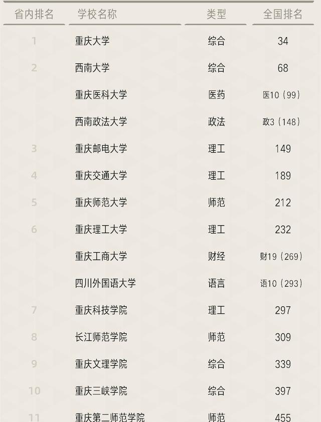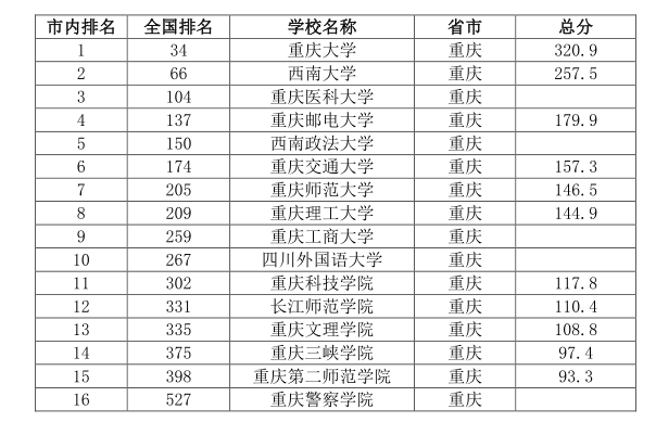 “2020软科中国大学排名”(主榜)重庆高校排行榜 (图片来源:软科)