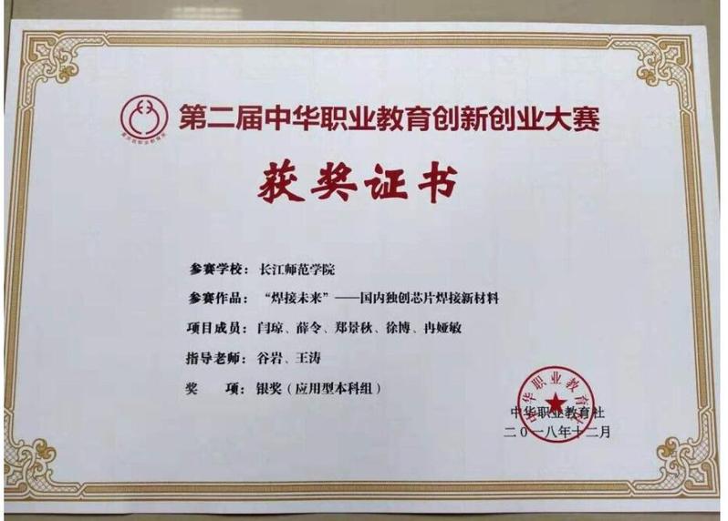 获得中华职业教育创新创业大赛(应用本科班)一等奖,银奖