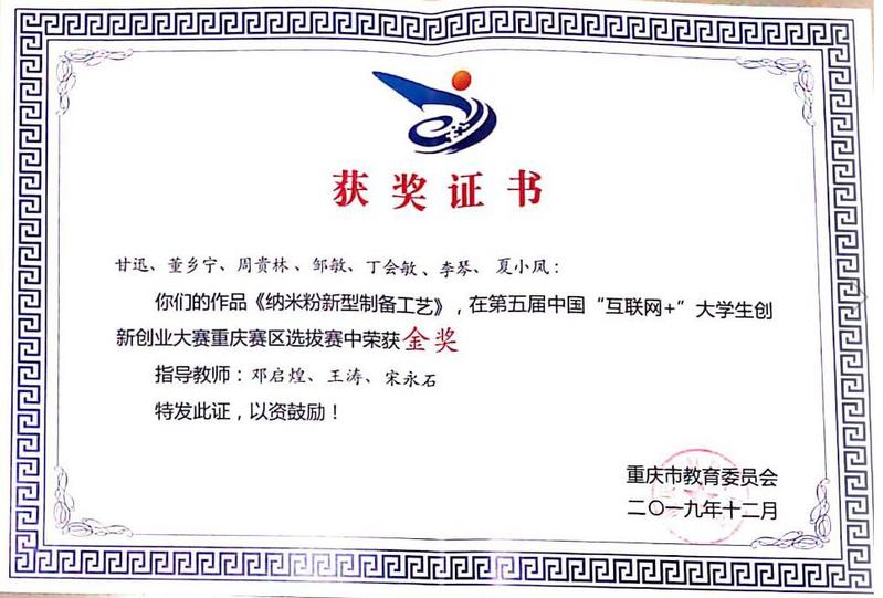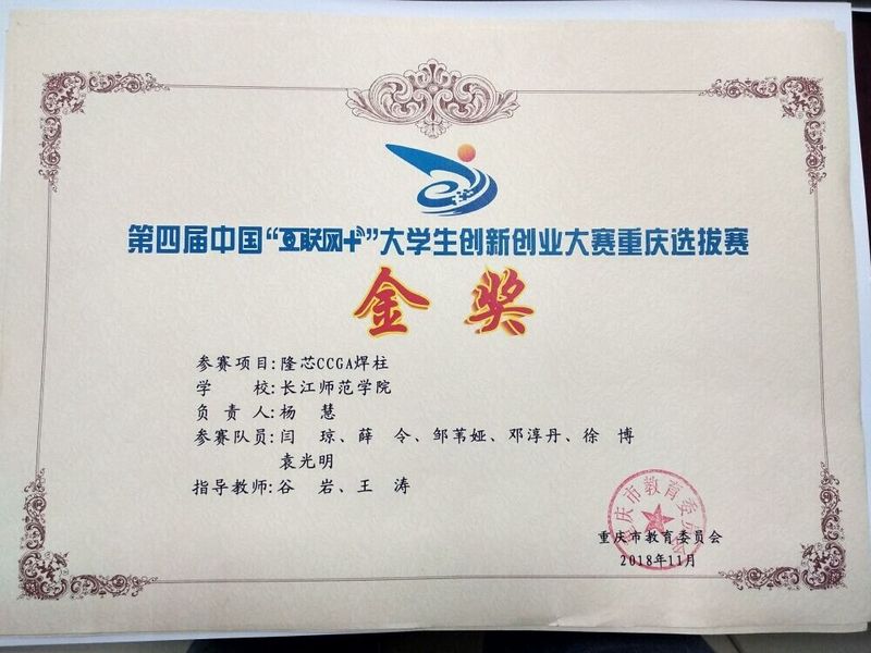 获互联网+老员工创业创业大赛金奖(重庆赛区)
