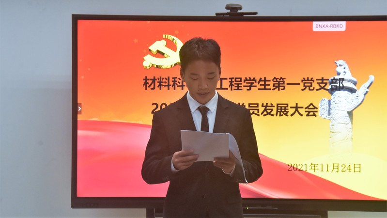 接着,待发展党员任亮和许杰两位同志宣读了入党志愿书并汇报了个人自传。