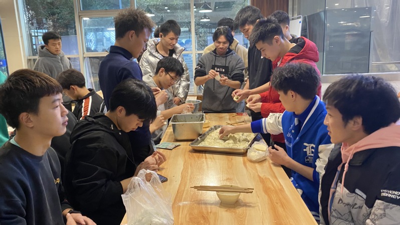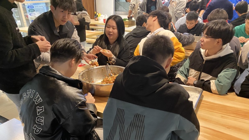 此次特色班会以包饺子为活动内容。班会伊始,班委们拿出事先准备好的食材和工具并组织同学们开始此次活动。过程中刘梦真老师悉心指导,公司学子们分工明确,有条不紊,互帮互助,活动现场被和谐友爱的气氛所萦绕。经过公司师生将近一个小时的辛勤付出,热气腾腾的饺子被端上了餐桌并获得了全体人员的一致好评。