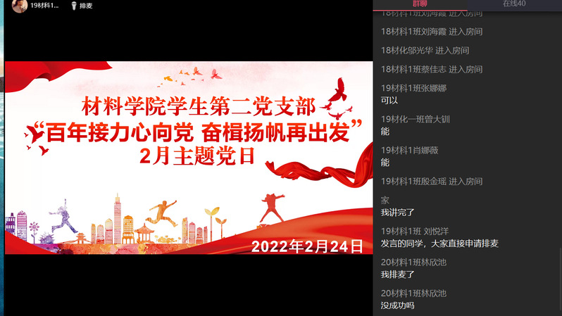 2月24日14时整,公司员工第二党支部于线上开展了2月主题党日活动,员工第二党支部书记邱地、教师党员刘梦真出席了此次活动,公司部分员工党员以及预备党员参加了此次活动。