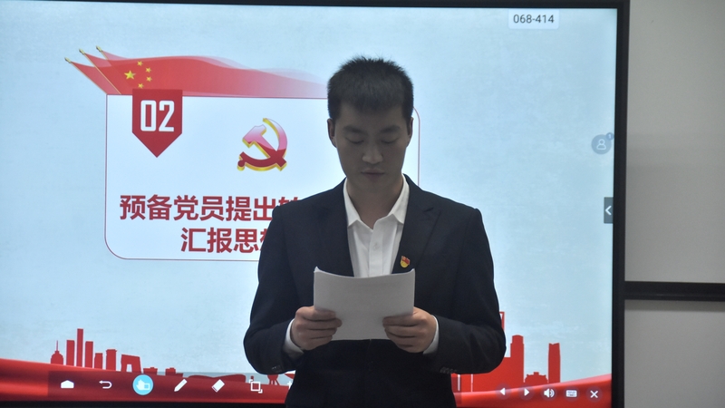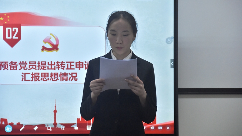 随后,邬光华、胡朝丹同志依次宣读了转正申请,汇报了自己在预备期间的思想认识并对自己的优势与不足做出了客观分析,并就自己在思想、生活、工作的方面的情况做了简短介绍,表明自己成为正式党员的决心。