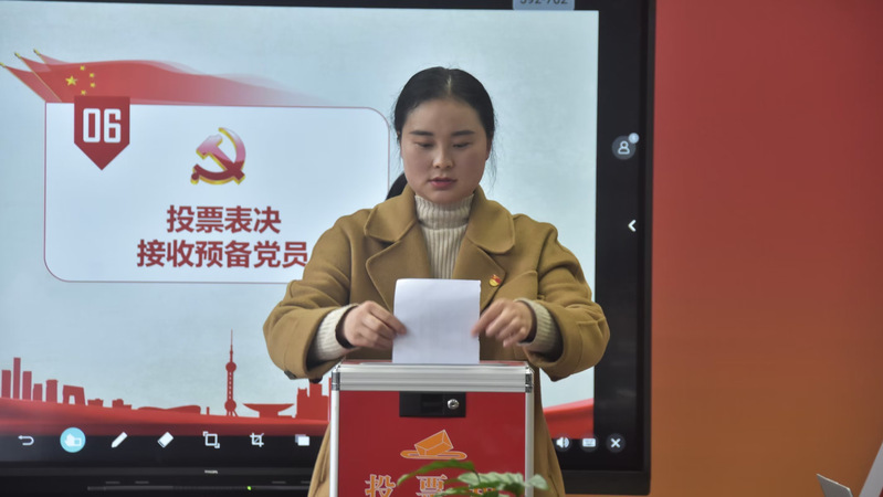 接着,由入党介绍人介绍预备党员情况,分别介绍其在预备期间思想、学习、生活及工作等各方面的表现,同时提出两名同志的优缺点并对他们是否能按期转正表明意见,与会党员也纷纷对两名同志提出意见和建议,并对两名同志能否按期转正发表意见。随后,正式党员以无记名投票方式进行表决,一致同意黄载籍、胡俊杰两位预备党员按期转正。