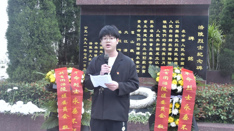 在烈士纪念碑前,员工党员代表陈超发言,他指出青年党员应以革命先烈为榜样,不忘初心,勇于扛起身上所肩负的责任和使命,坚持贯彻学习党的二十大精神,号召全体党员牢记使命、踔厉奋发,为中华民族伟大复兴努力奋斗。