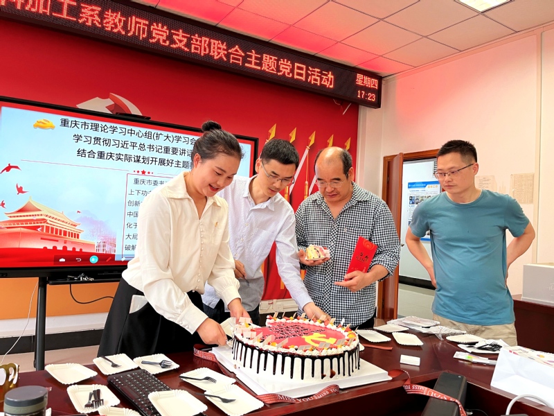 活动最后,党支部开展为相关党员同志过政治生日,重温入党誓词活动。全体党员起立,举起右手,进行庄严宣誓——“我志愿加入中国共产党...”。接着,给相关党员颁发生日贺卡之后,邓先蓉同志开始切分蛋糕,为党员同志过集体政治生日。党员同志们各自进行拍照纪念这最美瞬间,现场洋溢着轻松欢快的气氛。