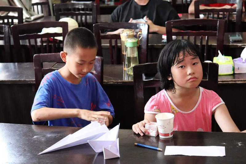 本次教学活动不仅重视知识的传授、游戏的陪伴,志愿服务团更加重视小朋友们的思考能力和动手能力,教会他们思考,培养动手能力,这也是本次活动的理念。为增强小孩子的动手能力,志愿者还带领小朋友们学习折纸,志愿者李卓远提前准备好了白纸,学会了4种纸飞机的折法,上课后,他将事先准备好的样式一一展示,小朋友们选择了自己最喜欢的纸飞机样式,开始学习折自己的飞机。随后,李卓远领着孩子们到户外,孩子们将自己折的纸飞机纷纷放飞。小小的纸飞机,承载着孩子们点点的纯真,飞向云端。