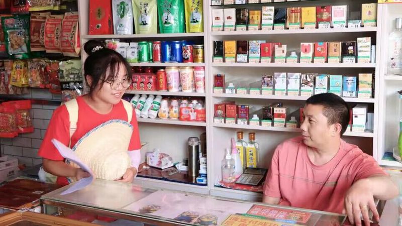 图为志愿者走访药店老板。通讯员王鑫供图